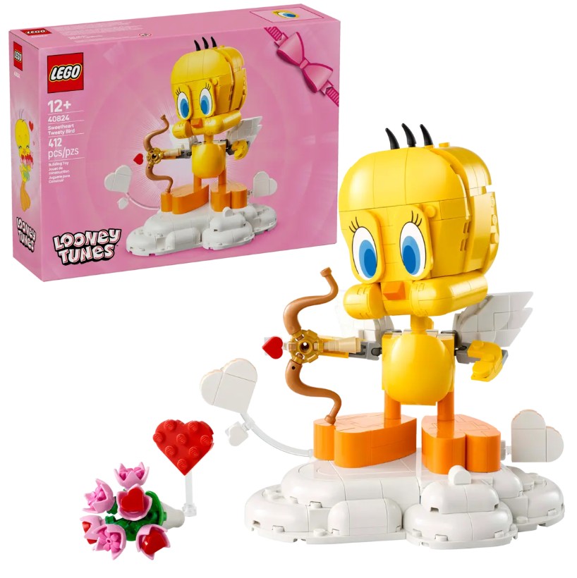 Voici un cadeau amusant pour la Saint-Valentin pour votre chéri. Rencontrez Titi chéri (40824), le petit personnage Looney Tunes™ le plus mignon avec un charme irrésistible. Cette version LEGO® du canari adorable peut être stylisée de deux façons différentes pour créer une pièce d’exposition amusante qui célèbre l’amour.Donnez à Titi le rôle de Cupidon en le plaçant sur son nuage avec un arc et des flèches, ou donnez-le le bouquet de fleurs et placez le cœur au-dessus de sa tête pour montrer son côté romantique. La figurine de Titi comporte de nombreux détails mobiles tels que la tête, les ailes, la queue et les pattes. Avec des accessoires attrayants, cet ensemble LEGO crée une pièce d’exposition qui ne manquera pas de faire battre lescœurs.