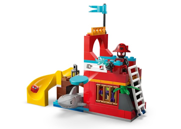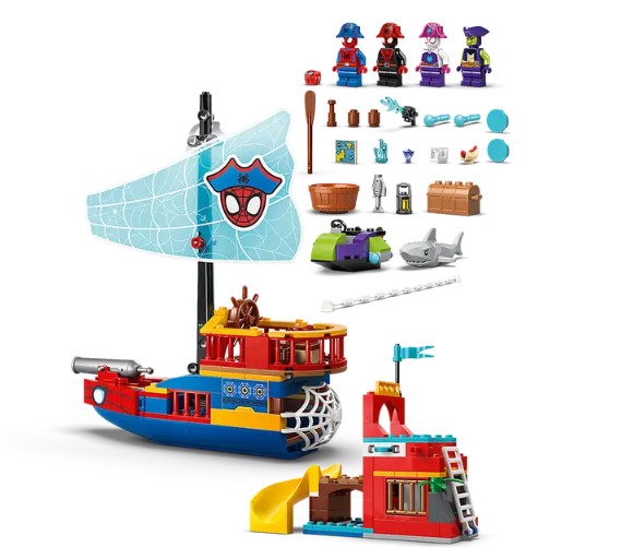 - 4 FIGURINES – Rejoignez Spidey, Ghost-Spider, Miles « Spin » Morales, le Bouffon Vert et Trace-E pour vous amuser sur un bateau pirate, l’île Spider et 2 autres petits bateaux dans ce jeu de construction plein d’action
