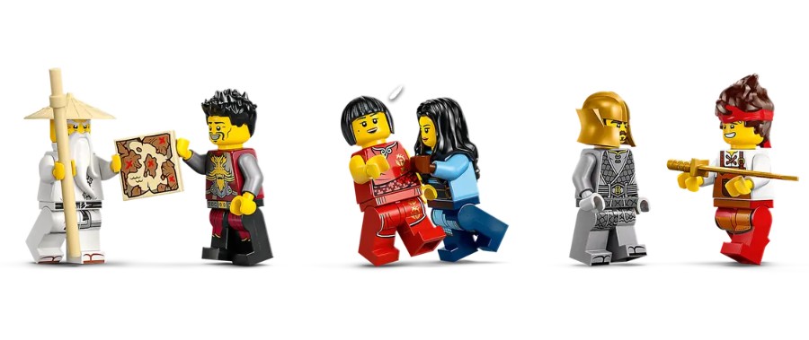 - 6 FIGURINES NINJAGO® –Cet ensemble nostalgique met en vedette des personnages de la série télé : Maya, Ray, Nya, Forgeron Kai, Maître Wu et, pour la toute première fois, un Maître de la terre élémentaire à collectionner