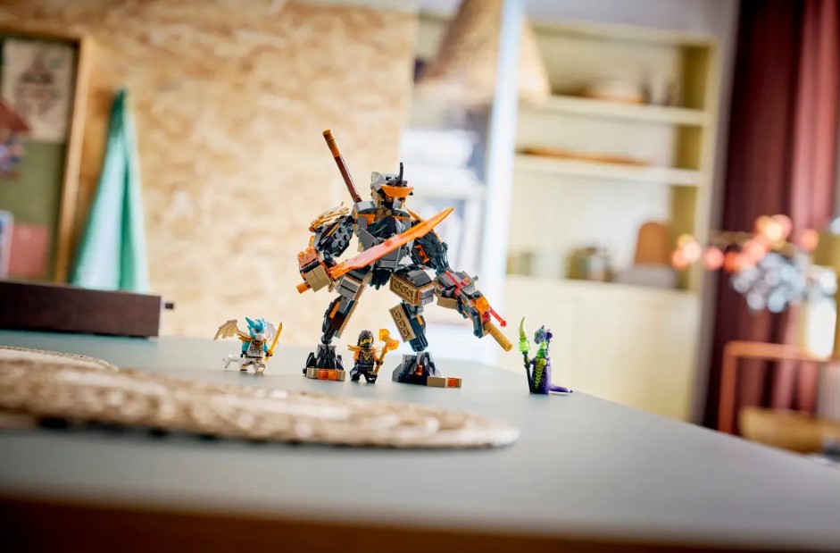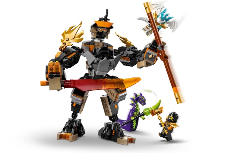 - 3 ACCESSOIRES D’ARMES ROBOT – Le robot est livré avec 3 armes : une épée, un bâton et un blaster à ressort avec 2 fléchettes, qui peuvent être remplacées par les armes du Combat de Riyu, le dragon ninja (71855), vendu séparément