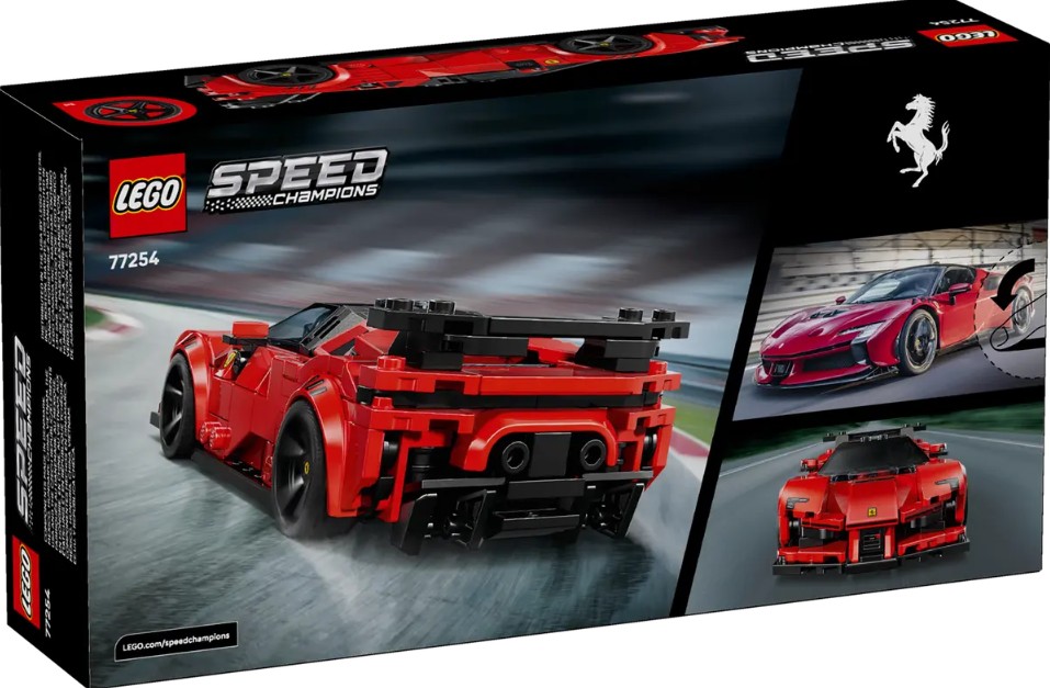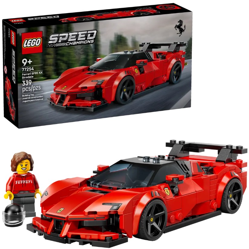 Les garçons et les filles de 9 ans et plus peuvent construire, jouer et exposer cet élégant LEGO® Speed Champions La voiture sport Ferrari SF90 XX Stradale (77254). Le modèle de Ferrari comprend plusieurs détails de conception inspirés de la version réelle – la voiture de route la plus puissante jamais créée par Ferrari. Cette voiture Ferrari présente un style avec cabine avancée, un aileron arrière, des échappements surélevés et des jantes ornées du blason Ferrari. L’ensemble comprend aussi une figurine de pilote habillée aux couleurs de Ferrari, avec casque, à placer dans l’habitacle monoplace, pour que les enfants puissent exposer fièrement leur passion pour le constructeur italien. Les ensembles LEGO Speed Champions constituent d’excellentes idées-cadeaux pour les enfants en leur permettant de construire des répliques de certains des véhicules les plus emblématiques au monde. Ils peuvent créer chaque ensemble en toute confiance à l’aide de l’application LEGO Builder : agrandir, faire pivoter en 3D et suivre la progression grâce à des instructions numériques faciles à suivre. L’ensemble contient 339 pièces.- MODÈLE DE VOITURE FERRARI – LEGO® Speed Champions La voiture sport Ferrari SF90 XX Stradale (77254) pour les garçons et les filles âgés de 9 ans et plus, à construire, exposer et utiliser pour jouer à des courses sur circuit et dans les rues