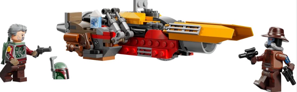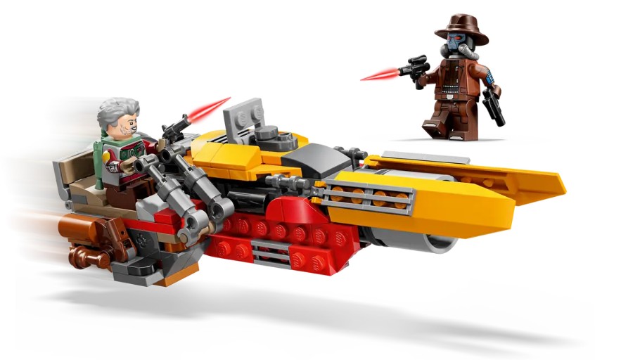 - 2 FIGURINES LEGO® STAR WARS™ – Équipez Cobb Vanth d’un pistolet blaster, d’un réacteur dorsal et de l’armure et du casque de Boba Fett pour affronter Cad Bane avec ses 2 pistolets blasters