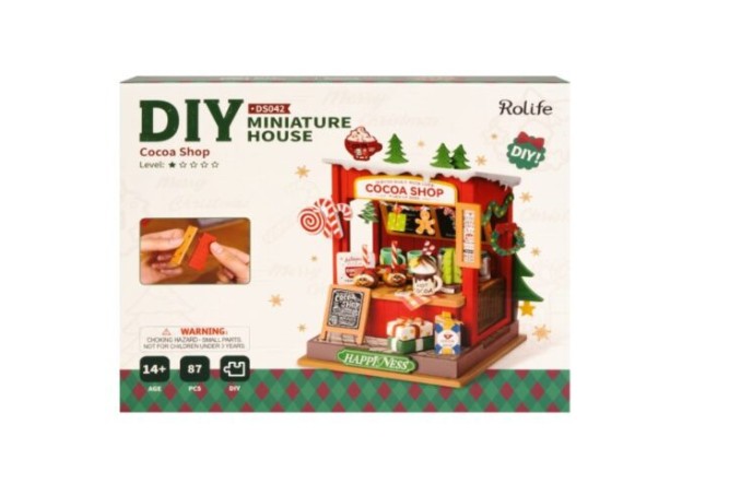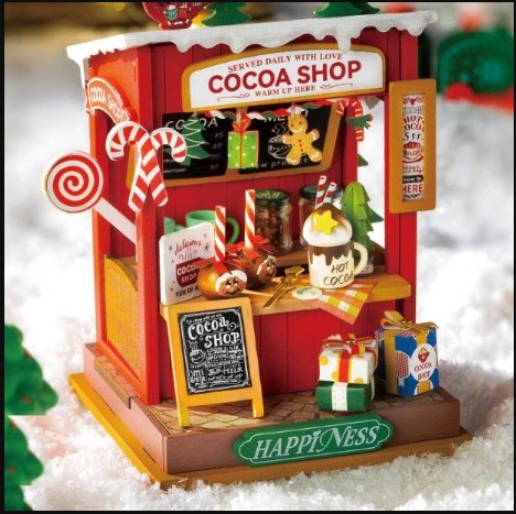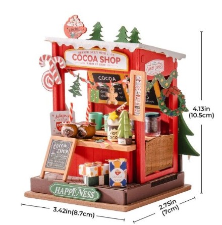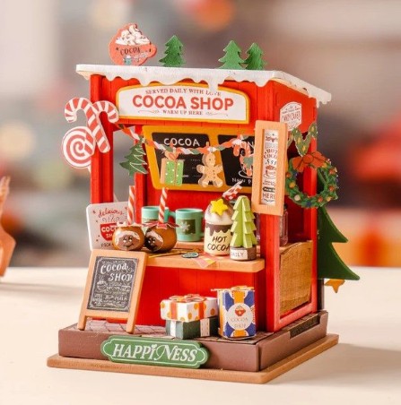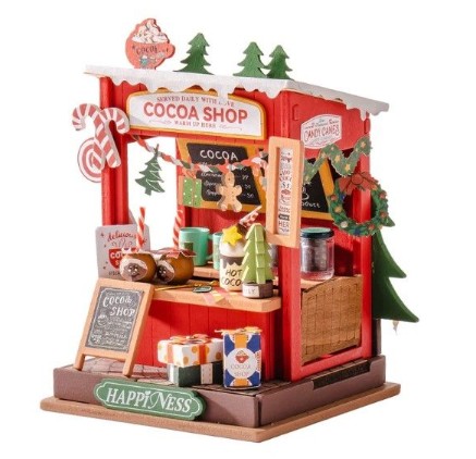 Recréez l’ambiance chaleureuse d’un petit kiosque de Noël avec ce charmant Magasin de Cacao miniature à construire soi-même. Entre les gobelets de chocolat chaud, les bonbons, les cannes de sucre d’orge et les décorations festives, tout y est pour faire fondre les cœurs.Compact mais riche en détails, ce stand rouge vif apportera instantanément une touche de magie hivernale à votre intérieur.