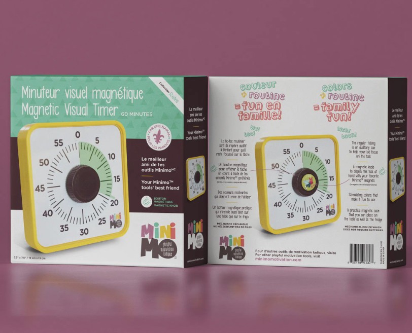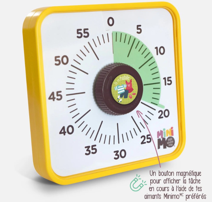 Le meilleur ami de tes outils Minimo!Le Minuteur visuel magnétique Minimo a un super pouvoir! Grâce à son bouton magnétique unique, tu peux afficher facilement la tâche en cours et ainsi fournir à mini un repère visuel facile à comprendre. En le combinant à tes outils Minimo préférés (avec l’ensemble Ma routine quotidienne, entre autres!), il offre à ton enfant encore plus de motivation et de plaisir à accomplir ses tâches.