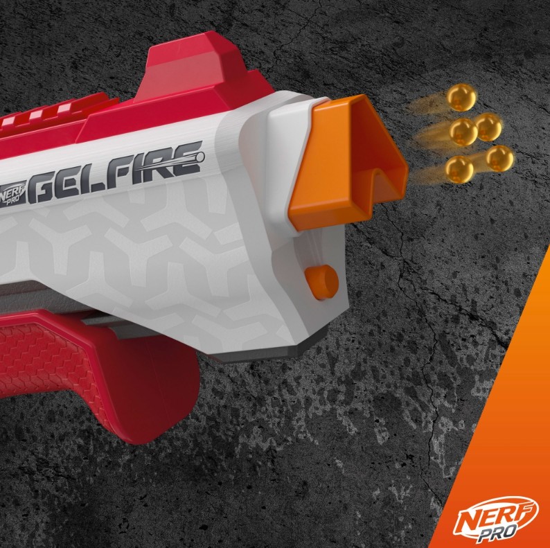 On s'éclate avec les blasters Nerf Pro Gelfire et leurs billes de gel hydratées qui éclatent à l'impact ! Ces blasters à très haute capacité offrent une performance supérieure qui permet de prendre l'avantage dans les compétitions. Les billes Nerf Pro Gelfire incluses dans la boîte sont déshydratées et il y en a une quantité phénoménale, assez pour de nombreuses recharges. Il suffit d'ajouter de l'eau aux billes pour les hydrater et les préparer à l'utilisation. Les billes de gel hydratées sont tirées à haute vitesse et éclatent quand elles frappent leur cible. Il n'y a pas de billes à ramasser ! Le blaster Nerf Pro Gelfire Raid permet de tirer 5 billes dispersées à chaque fois qu'on appuie sur la détente. Ce super blaster inclut un chargeur-trémie haute capacité 800 billes et 10 000 billes molles Nerf Pro Gelfire déshydratées en polymère super absorbant. Inclut un cran de sûreté pour empêcher les tirs accidentels et des lunettes de protection. Jusqu'à 45,5 m/s.Utilisation à l'extérieur recommandée