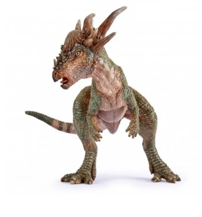 Stygimoloch, une jolie figurine sur le thème de la préhistoire, peinte soigneusement à la main et modelée de façon très réaliste. Les figurines Papo deviendront rapidement la base d'une collection à enrichir progressivement pour l'éveil et la découverte de votre enfant.Le nom de Stygimoloch renvoie au site de Hell Creek dans le Montana, où ce dinosaure a été trouvé. C’était un Pachycéphalosaure, avec des cornes très développées et des pointes protubérantes sur la basez de son crâne ovoïde et son museau. Le stygimoloch est un dinosaure qui vivait dans ce qui est aujourd'hui l'Amérique du Nord il y a de cela 63 à 66 millions d'années, à la fin du crétacé