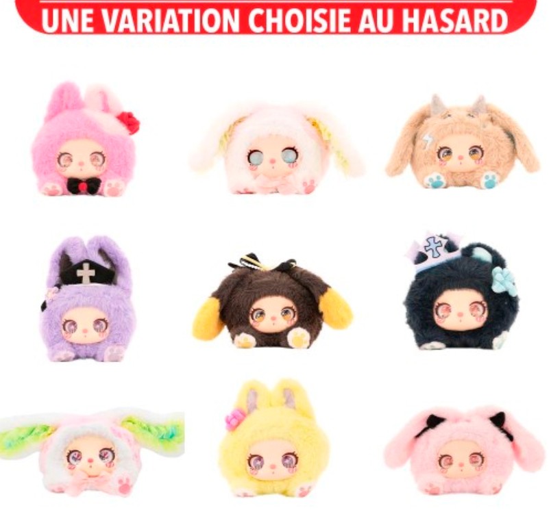 PELUCHE BABY THREE - SAC LAPIN EN GUIMAUVE DE LILA (LABUBU LAFUFU LABOUBOU) ASST est catégorisé dans PELUCHES / Peluches cinéma / télé en vente chez Galerie du Jouet, un magasin-boutique et un site web spécialisé.