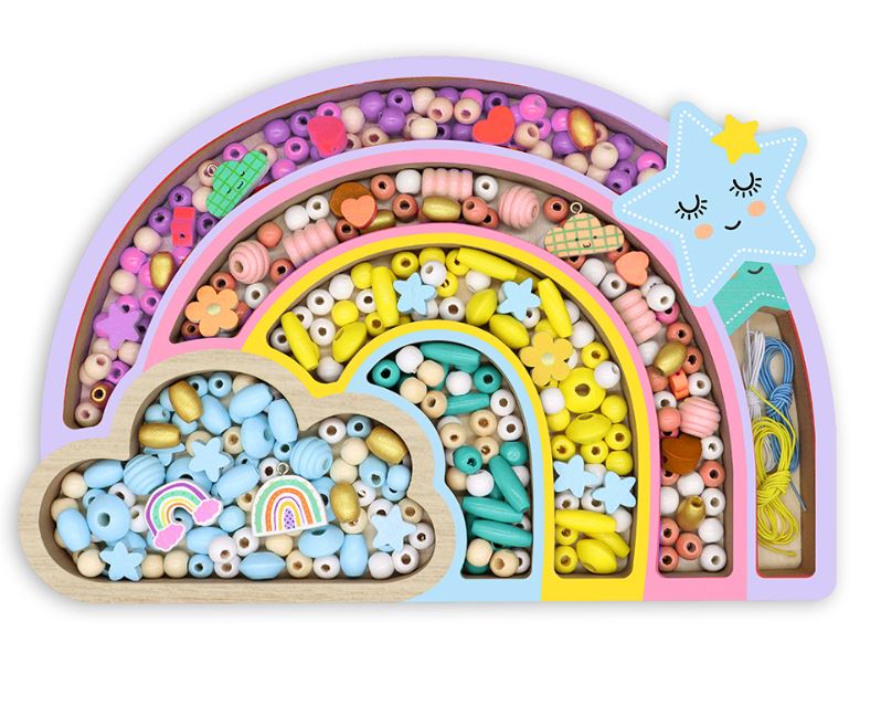 SycomoreUn coffret original en forme d'arc-en-ciel contenant de jolies perles aux couleurs pastel pour créer de jolis bijoux : colliers, bracelets...