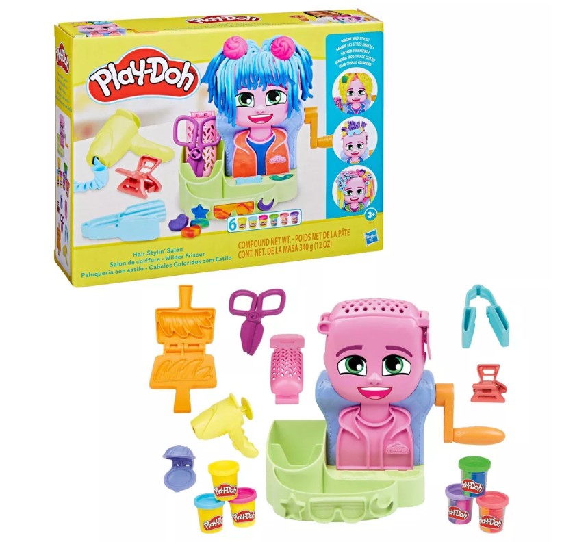 Avec le coffret Salon de Coiffure Play-Doh, les enfants peuvent exprimer leur style unique ! Il suffit de mettre de la pâte à modeler Play-Doh et de laisser libre cours à leur imagination pour faire pousser et coiffer des cheveux rigolos ! Ce kit Play-Doh comprend de nombreux accessoires amusants, comme un sèche-cheveux pour créer des boucles, un moule à crête, un fer à friser et 2 plaques différentes pour réaliser diverses textures de cheveux. Grâce aux 340 g de pâte à modeler Play-Doh, répartis dans 3 pots bicolores, les enfants peuvent créer des coupes longues ou courtes ! Ce coffret de jeu d'intérieur est idéal pour stimuler l'imagination. Les coffrets Play-Doh pour filles et garçons sont d'excellents cadeaux pour les enfants à partir de 3 ans.Âge: 3 +