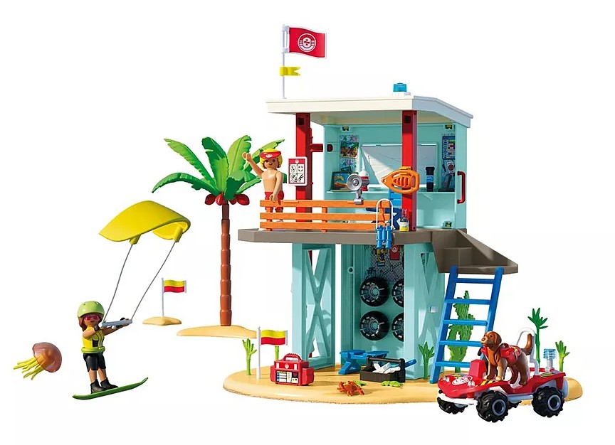 Aidez les maitre-nageurs sauveteurs à surveiller tous les vacanciers à la plage du haut de leur poste de secours ! Comprend un poste de secours, une voiturette de plage, trois personnages, un chien et de nombreux accessoires.Soleil, sable et missions de sauvetage — une journée bien remplie au Poste de secours PLAYMOBIL ! Avec ses deux étages, sa barre de descente et son poste de secours entièrement équipée, les enfants peuvent surveiller les baigneurs et intervenir rapidement en cas de besoin. Une méduse urticante et un crabe animent la scène. La voiturette de plage peut transporter un personnage ainsi que la planche de sauvetage pour des interventions rapides, tandis que le rez-de-chaussée abrite un atelier de réparation avec outils et pneus de rechange. Un chien de sauvetage courageux, équipé d’un gilet de sauvetage, accompagne l’équipe, sans oublier l’équipement de kitesurf pour encore plus d’action. Ce set PLAYMOBIL riche en détails offre une multitude d’accessoires et promet des aventures estivales pleines d’imagination !