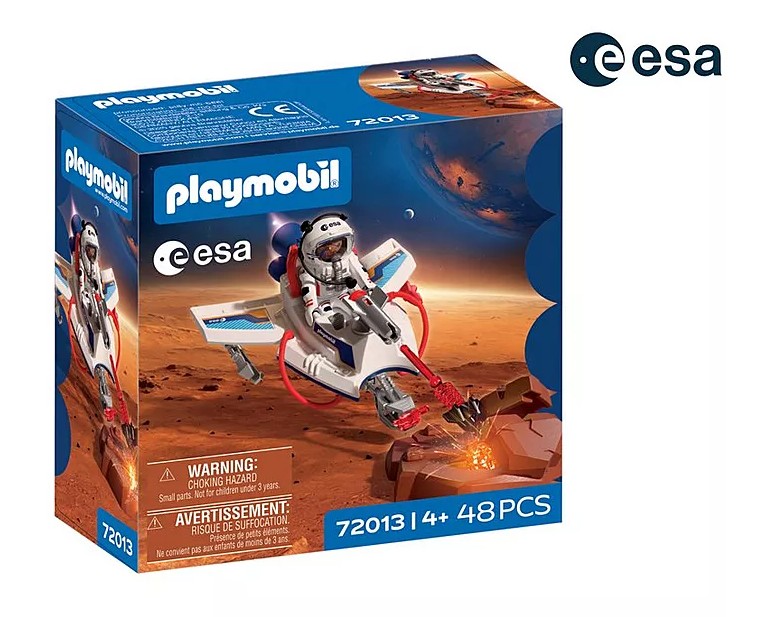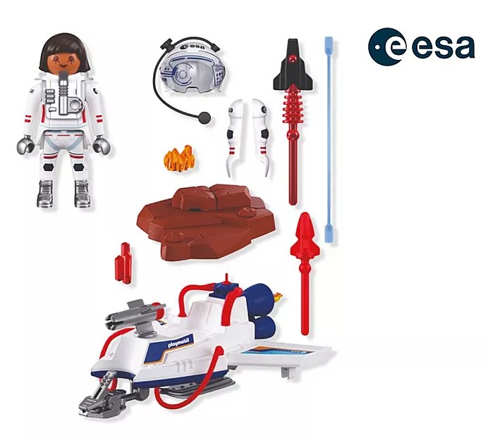 Développé en coopération avec l'Agence spatiale européenne (ESA) – PLAYMOBIL apporte la fascination de l’exploration de l’espace directement dans la chambre des enfants ! Le planeur spatial file au ras du sol martien et scanne le sol à la recherche de découvertes extraordinaires. Grâce à sa pince, il a déjà récupéré un cristal précieux – mais il y en a bien plus dans la roche ! Avec son projectile spécial, il vise une formation rocheuse pour en extraire les cristaux qui y sont cachés. Parfait pour des aventures Playmobil pleines d’action, de découvertes et d’équipements haute technologie !Rasant au-dessus du relief martien, le planeur ESA de PLAYMOBIL, avec sa tourelle rotative et ses blasters puissants, offre à l’astronaute tout le nécessaire pour des découvertes audacieuses. Par des mouvements précis, le bras de préhension pivotant cherche sous la poussière pour soulever des échantillons cachés, tandis que les outils à bord aident à ouvrir des roches mystérieuses et révéler des cristaux lumineux. Chaque vol apporte son lot de surprises et de défis. Ce set détaillé invite les jeunes explorateurs et exploratrices à guider l'astronaute et son appareil high-tech à travers des missions spatiales passionnantes.