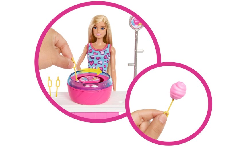 Ce coffret Barbie Mystères – Kiosque de jeux et gâteries transporte les enfants dans l’univers amusant et coloré de la série Barbie Mysteries: Beach Detectives sur Netflix. Barbie « Malibu » tient un kiosque rempli d’activités ludiques, de friandises et de surprises pour recréer des scènes inspirées de la série.Avec plus de 15 accessoires, les enfants peuvent faire tourner la machine à barbe à papa, jouer aux mini-jeux, distribuer des gâteries et imaginer des enquêtes passionnantes sur la plage.