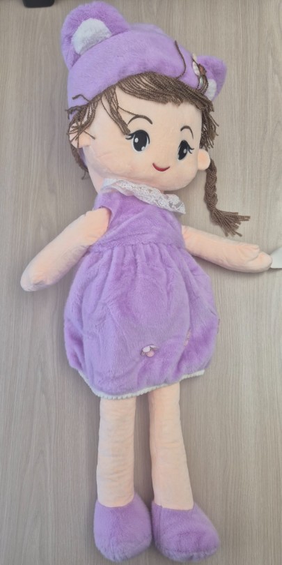 Poupée molle2 modèles assortis. rose et mauve