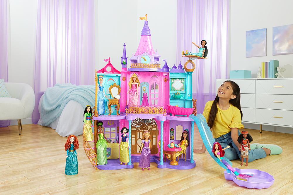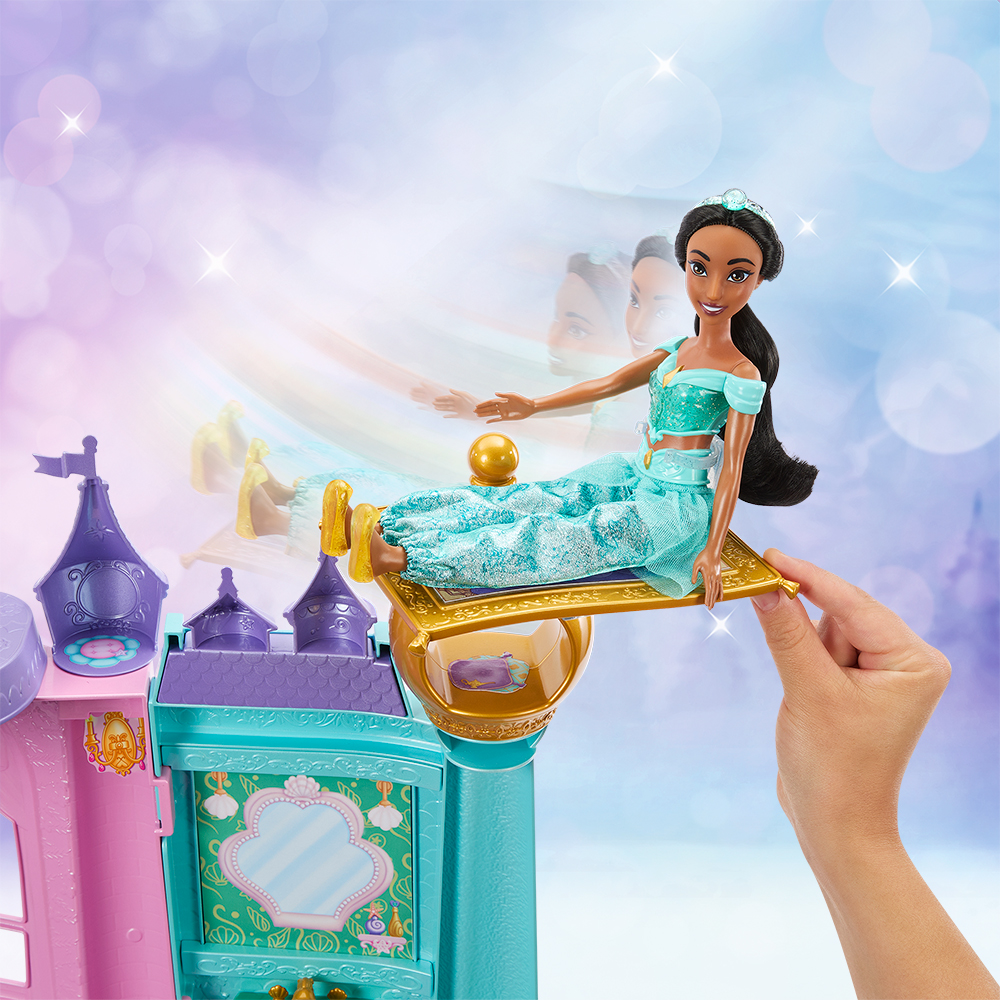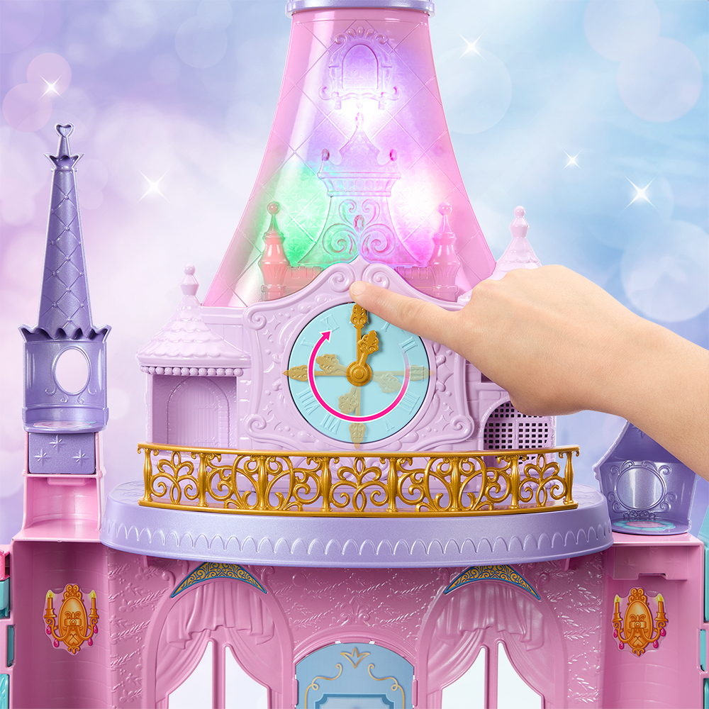 L’incroyable château des Aventures Magiques est la maison de poupée Princesses Disney par excellence! D’une hauteur de 2 mètres, le château comprend 10 aires de jeu, chacune sur le thème d’un personnage différent de Princesse Disney. Les enfants peuvent faire tourner les aiguilles de l’horloge pour activer des lumières et des sons magiques, y compris un feu d’artifice! Le château comprend un toboggan, une piscine et un tapis volant pour des aventures dans l’eau et hors de l’eau. Comprend également un escalier et un balcon pour jouer à raconter des histoires! La maison de poupée château comprend 28 meubles et accessoires, dont une table et des chaises, une baignoire, un lit et une couverture, ainsi que des éléments de cuisine qui peuvent être reliés à la table et à la cuisinière. Le château comprend également un magnifique lustre et une lampe à lucioles que les enfants peuvent déplacer dans la maison de poupée, accrocher au plafond et faire tourner pour une touche de magie supplémentaire. C’est un cadeau idéal pour que les enfants puissent jouer leurs moments préférés dans les films ou rêver à leurs propres aventures avec les Princesses Disney! Les fans peuvent collectionner toutes les poupées de mode Princesse Disney et vivre l’ultime aventure du château! Chaque poupée est vendue séparément, sous réserve de disponibilité. Les couleurs et les décorations peuvent varier.