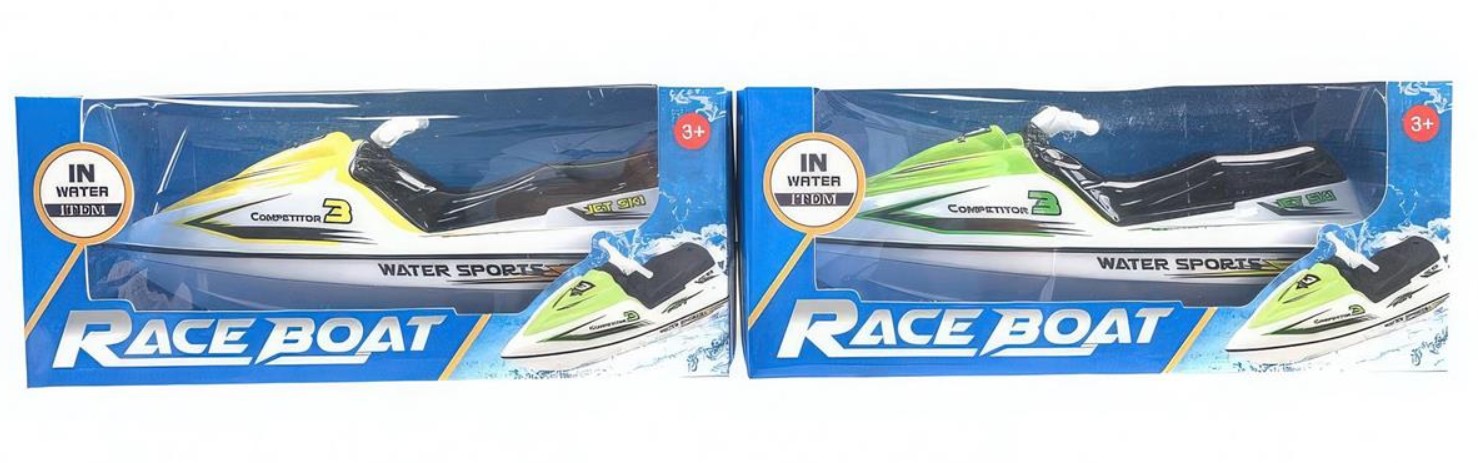 🚤 Jet Ski Électrique à Piles – Race BoatFaites sensation dans le bain, à la piscine ou au chalet avec ce jet ski motorisé à piles ! Rapide, amusant et facile à utiliser, il promet des heures de plaisir aquatique pour les petits amateurs de sports nautiques.