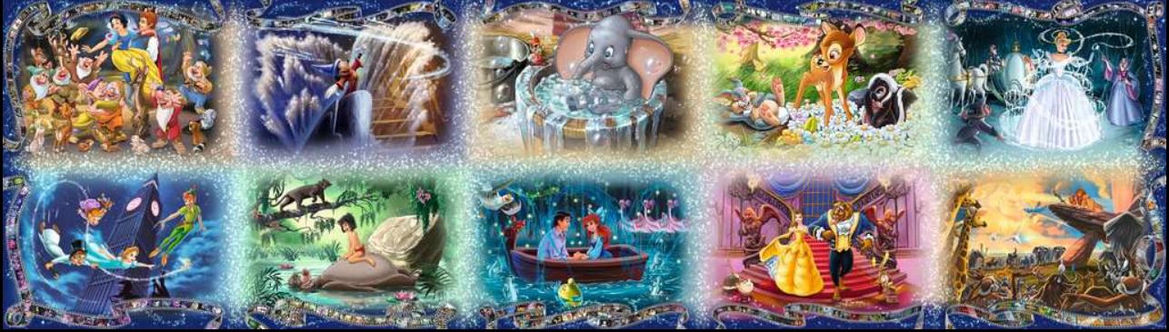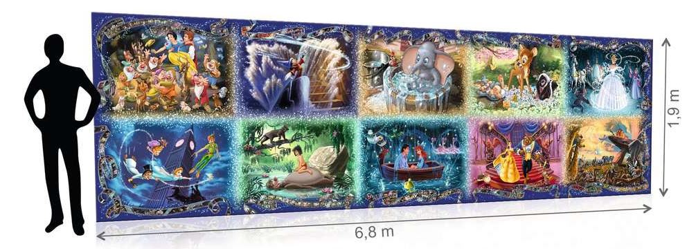 pièces et en dimensions. Ce puzzle géant représente 10 scènes iconiques Disney dessinées à la main, telles
