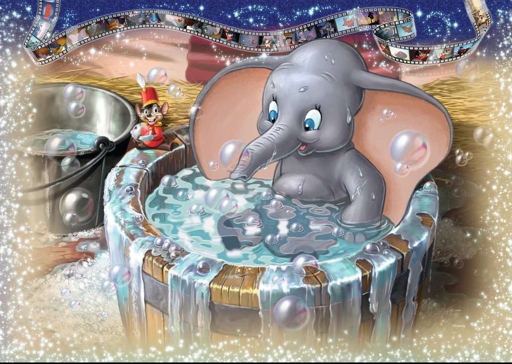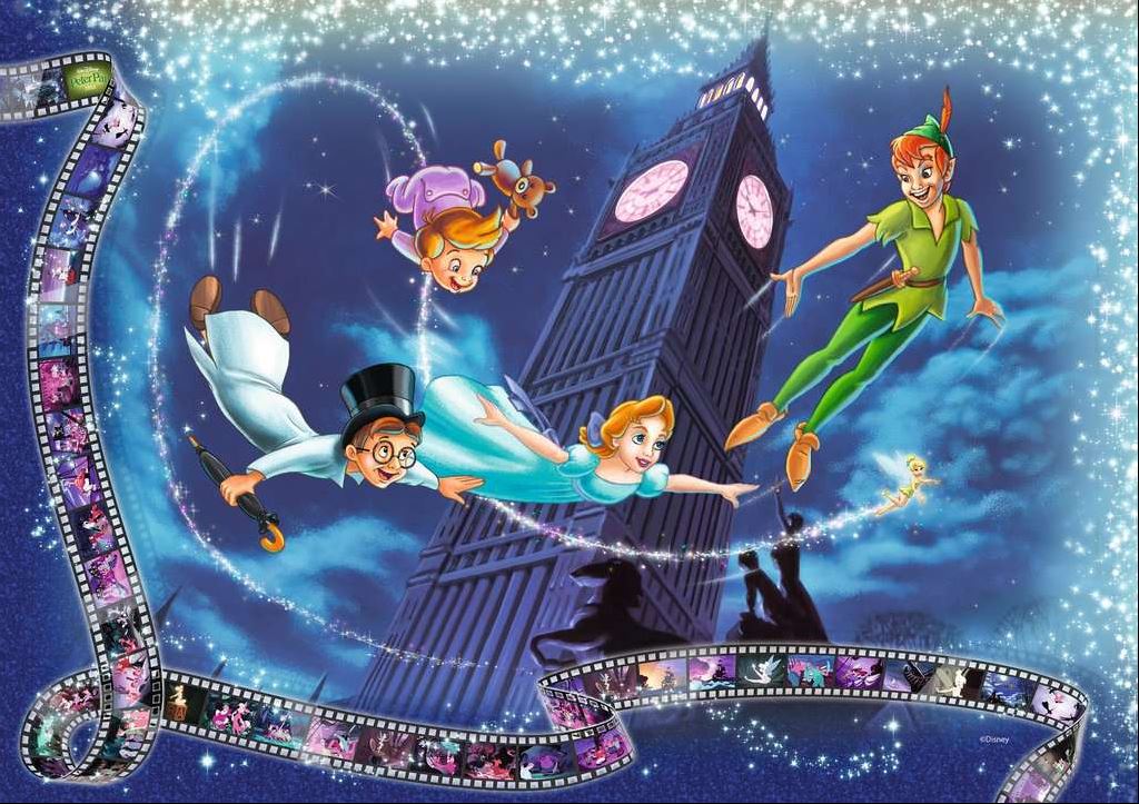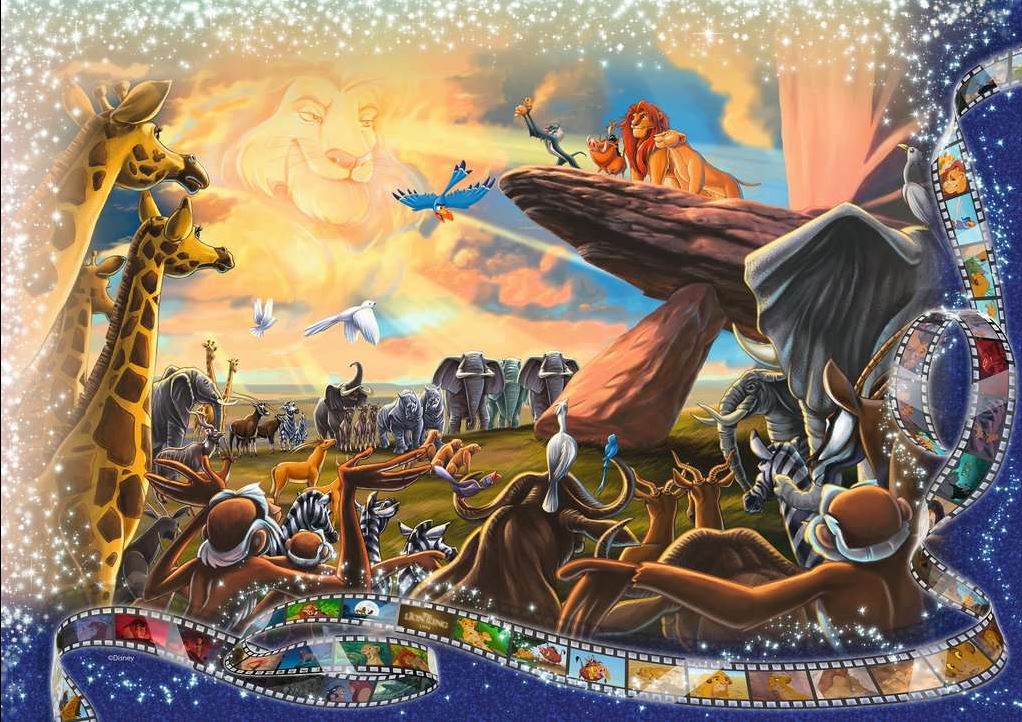 que Blanche-Neige, Fantasia, Dumbo, Bambi, Cendrillon, Peter Pan, Le Livre de la Jungle, La Petite Sirène, La Belle et la Bête et Le Roi Lion. Chaque scène est présentée dans un encadrement en forme de pellicule de film, indiquant l’année de sortie du film et illustrant des scènes de celui-ci. Les instructions incluent des indices utiles à l’assemblage du puzzle et un guide de référence. Astuce : un symbole Mickey Mouse est caché dans chacune des 10 scènes !