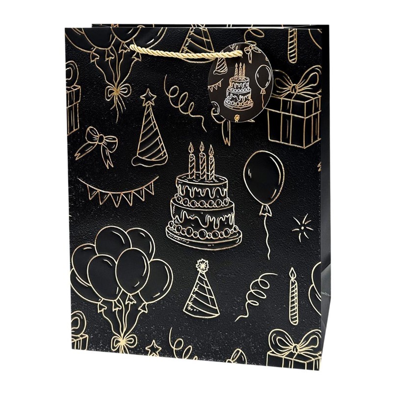 🎉 Sac cadeau Moyen – Motifs anniversaire avec fond noit matPrésentez vos cadeaux avec élégance grâce à ce sac cadeau grand format aux motifs d’anniversaire. Son design festif sur fond noir avec détails dorés apporte une touche chic et moderne à toutes vos célébrations 🎂🎈