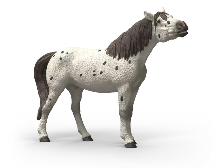 Le Hongre Knabstrupper Schleich vole la vedette avec son motif à pois unique. Ce cheval amical est parfait pour le dressage ou les loisirs dans votre monde de jeu