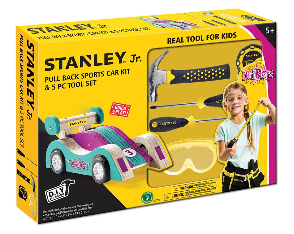 StanleyDéfiez l'imagination de vos enfants tout en les gardant actifs et engagés avec cet amusant kit de voiture de sport à tirer avec un ensemble d'outils de 5 pièces.