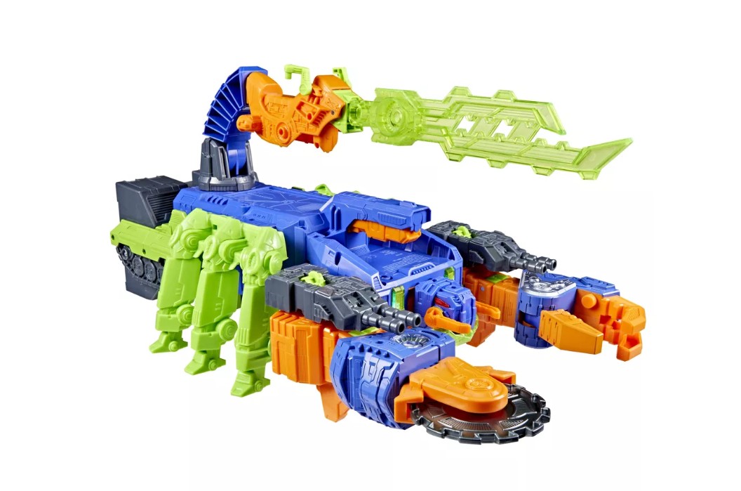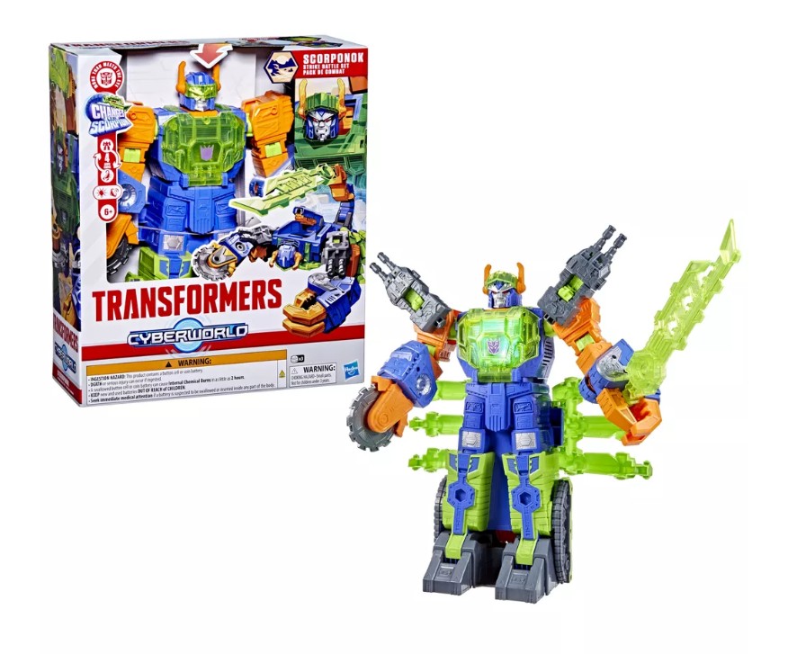 Dans Transformers CYBERWORLD, les enfants décident de ce qui se passe, et cela commence avec des jouets géniaux comme le Coffret de Combat Scorponok ! Ce jouet 2-en-1, doté de lumières et de sons, se transforme d'une figurine robot de 35 cm en un scorpion géant de 50,5 cm prêt au combat en seulement 4 étapes, faciles à utiliser pour les enfants de 6 ans et plus. Les figurines Cyber Changers CYBERWORLD (vendues séparément, sous réserve de disponibilité) peuvent interagir avec ce coffret Transformers de multiples façons : un bras scie circulaire amovible se transforme en aéroglisseur, un bras pince prêt à attraper tout (ou n'importe qui) sur son passage, une queue amovible se transforme en épée, et deux postes de combat sont intégrés à son torse et à ses jambes. Les jouets électroniques comme le Coffret de Combat Scorponok constituent de superbes cadeaux pour les garçons et les filles qui aiment les robots, les jeux d'imitation et les personnages Transformers comme Optimus Prime et Bumblebee.Âge: 3 +