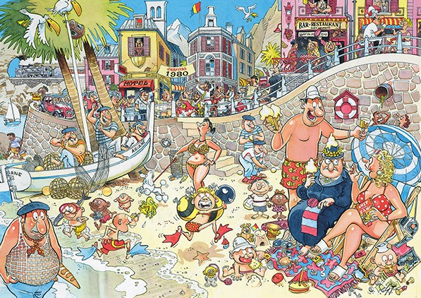 Wasgij Retro Destiny 8 High Season est un casse-tête hilarant de 1000 pièces. Pour célébrer le 20e anniversaire de la très populaire marque de puzzles Wasgij, ce casse-tête Wasgij Destiny a été réédité dans une édition spéciale de la gamme Retro. Remontez le temps dans le cadre idyllique de la plage méditerranéenne des années 1980.Le concept original se base sur le thème : « Avez-vous des yeux derrière la tête ? » Ce qui signifie que l’illustration du puzzle représente ce que les personnages de la boîte regardent. Vous devez donc user d’imagination et vous baser sur les indices de la boîte afin de reconstituer l’image. Seul le puzzle vous révélera l’énigme qui se cache derrière votre Wasgij!