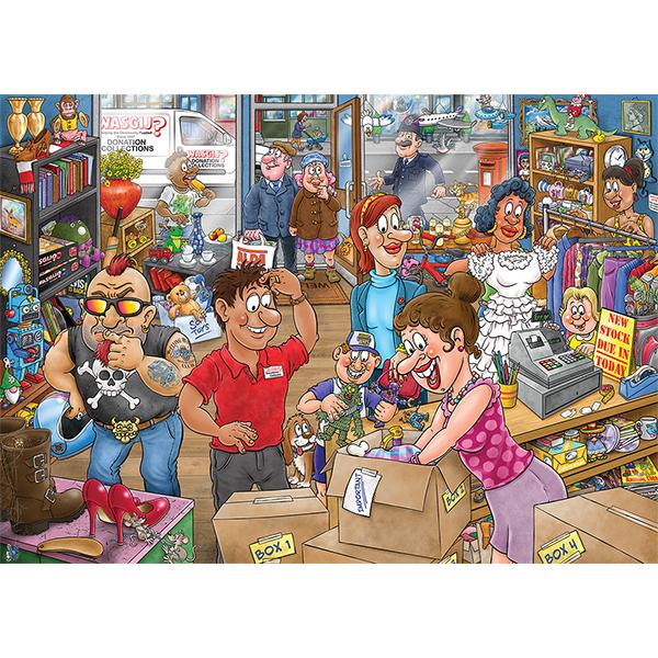 La boutique caritative est en pleine effervescence, les acheteurs parcourant avec enthousiasme les articles à la recherche de bonnes affaires. Des robes glamour aux jouets vintage, il y en a pour tous les goûts à des prix imbattables. Un nouveau lot de dons vient d'être livré, ajoutant à l'effervescence, mais quelles surprises ces cartons pourraient-ils bien receler ?Faites appel à votre imagination et aux indices fournis pour reconstituer ce qui va se passer ensuite. C'est la scène que vous devrez reconstituer.